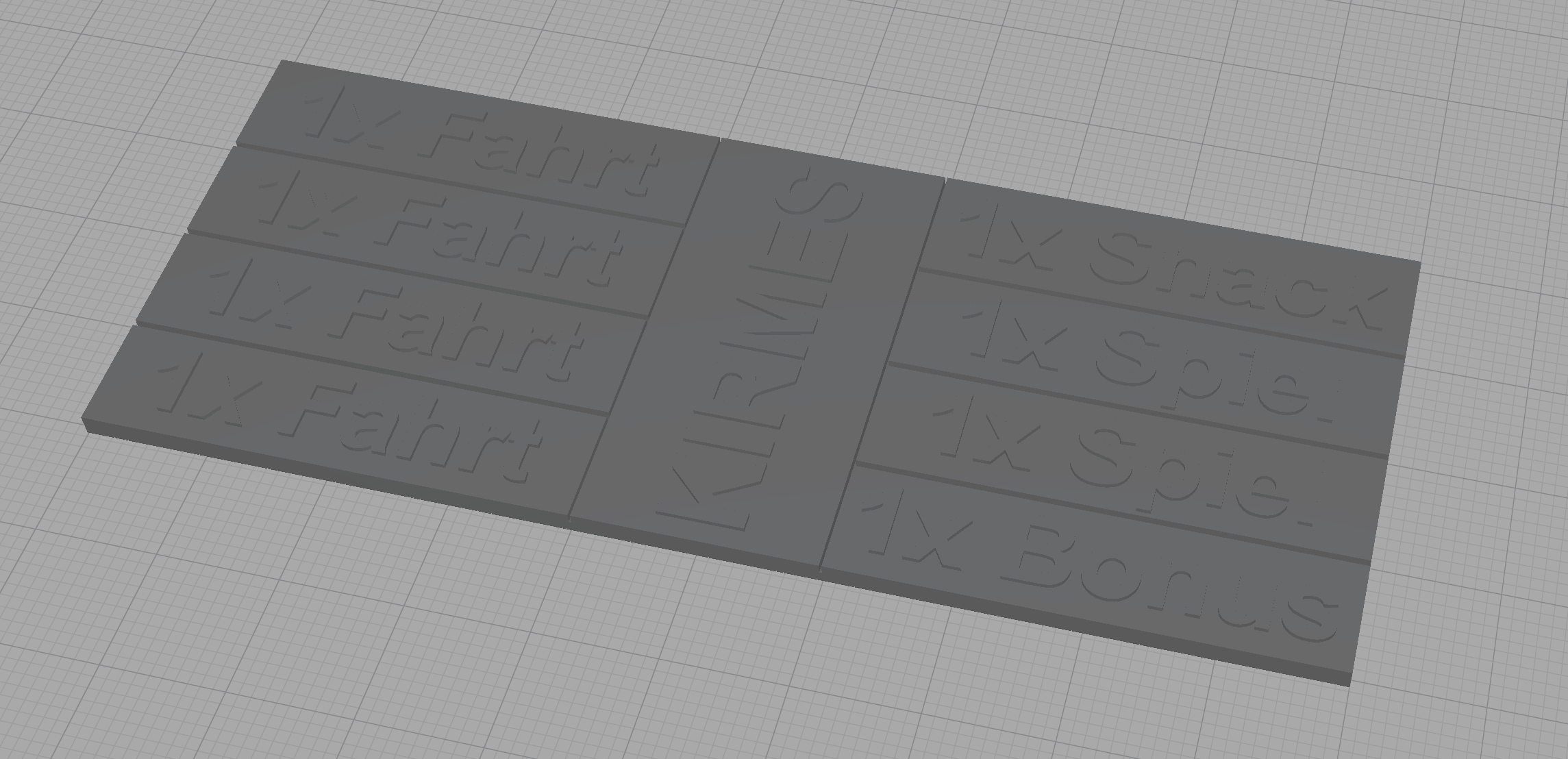 Eine 3D-Kirmes-Karte ist eine stabile, aber flexible Kunststoffkarte, die in einzelne Bereiche unterteilt ist – ähnlich wie eine Tafel Schokolade. Jedes Feld steht für eine bestimmte Leistung, zum Beispiel: